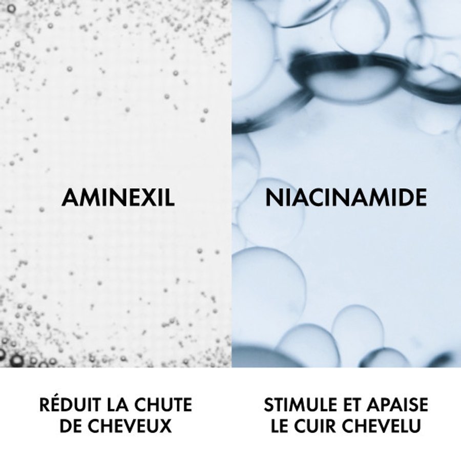 - Le Shampooing Stimulant Energy+ DERCOS est formulé avec de l’Aminexil™, du Niacinamide, des acides de fruits (AHA) et de la Vitamine E pour limiter la casse de la fibre capillaire et la perte de cheveux. Utilisé régulièrement, les cheveux sont revitalisés et plus résistants, et la chute de cheveux est nettement ralentie.